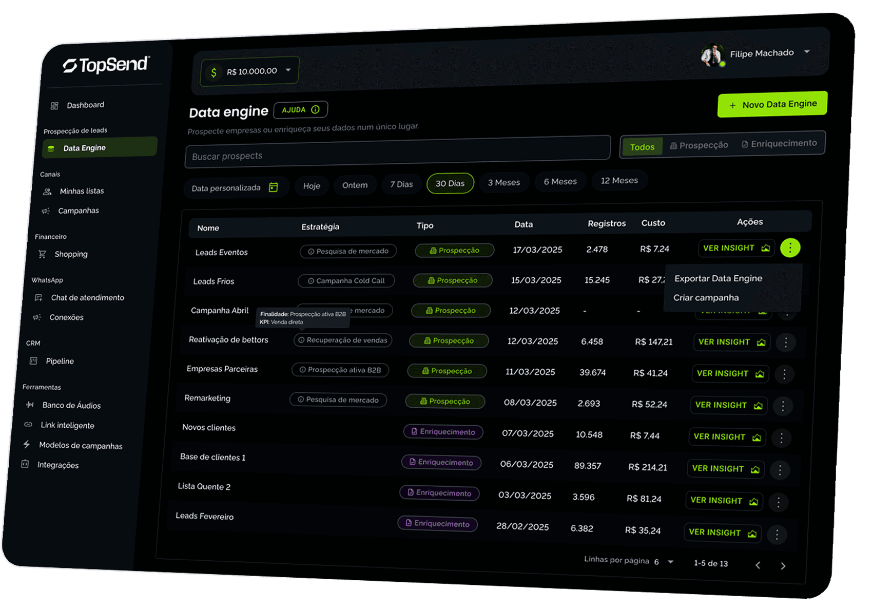 leads com a plataforma da TopSend